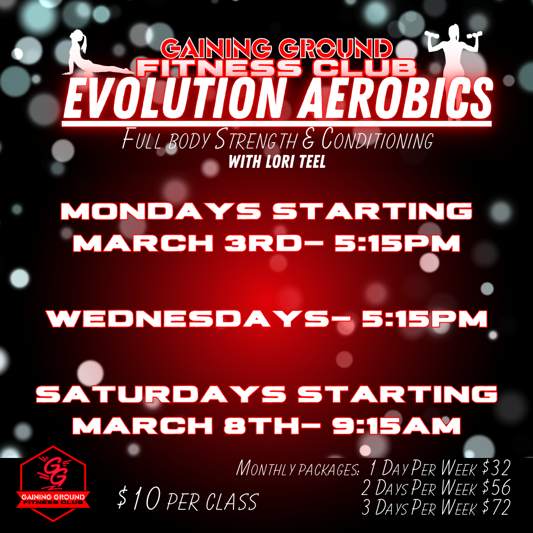 A full-body routine designed to evolve your fitness, including stretching, bodyweight/dumbbell exercises, and step aerobics, led by Lori Teel. $10 per class. Class is capped at 12 participants!